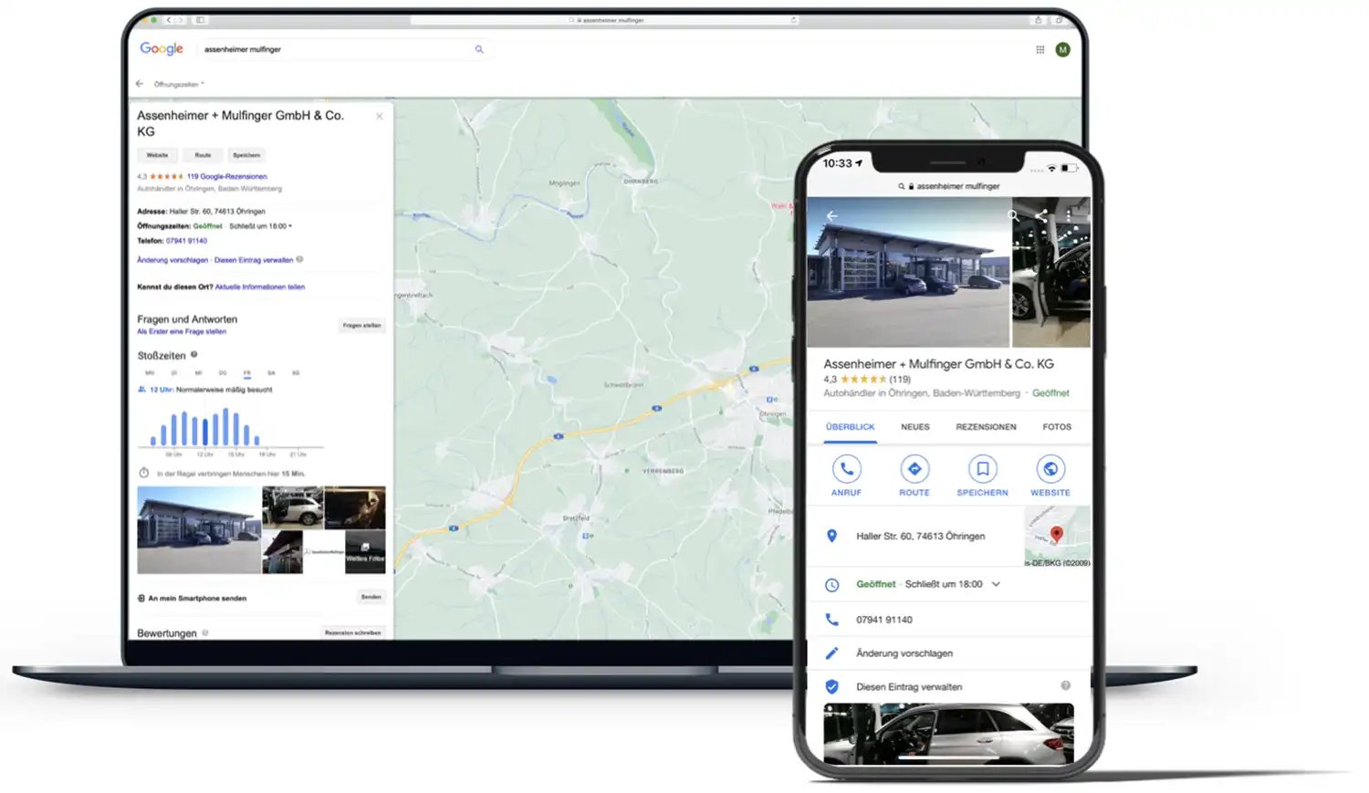 Wir sind zertifizierter Google Unternehmensprofil Partner, verwalten Ihren Eintrag und erledigen die Datenpflege fĂŒr Sie. So haben Sie mehr Zeit, sich auf Ihre Kunden zu konzentrieren.